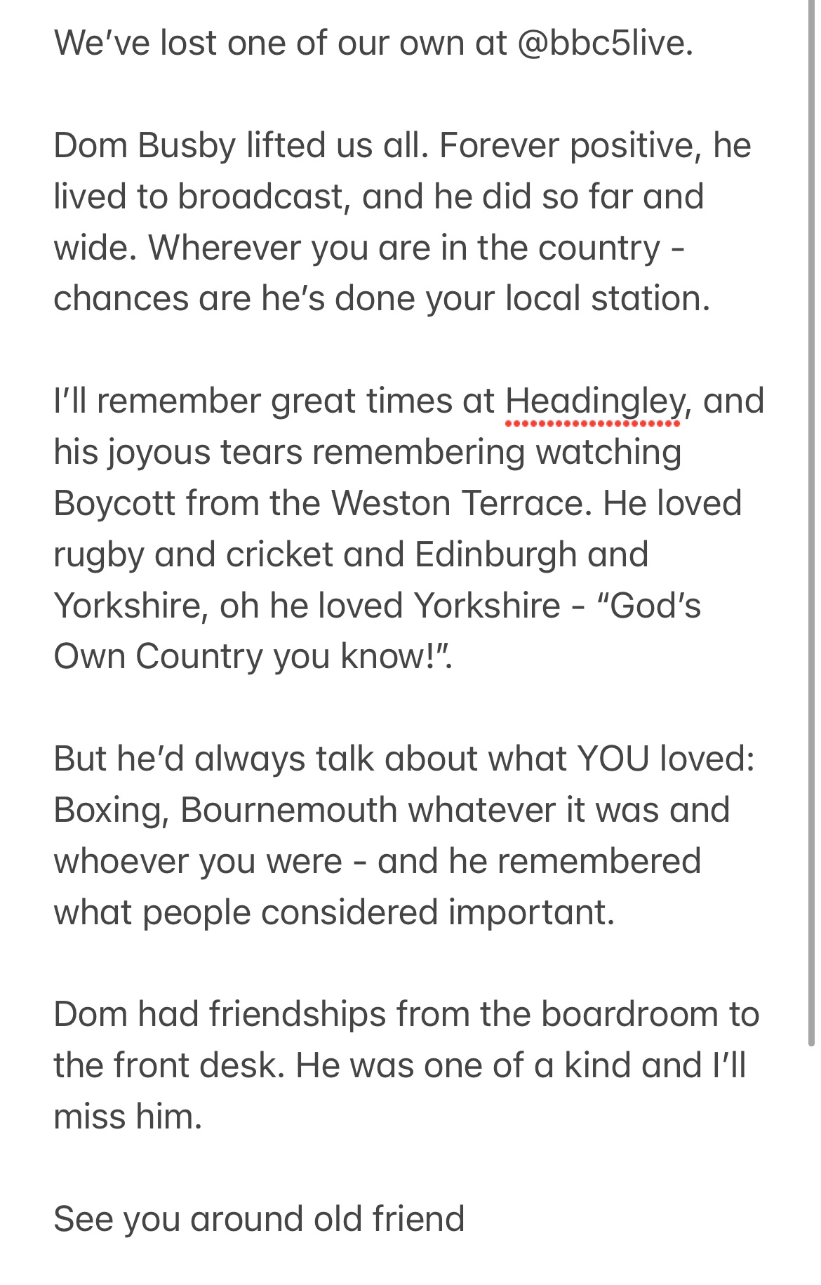 Dominic busby, from harrogate, helped launch minster fm in york. Get the latest news from our colleague and friend dominic busby has died after a short illness. Dom busby had a long and distinguished career in radio sports presenting. Busby mt real estate & homes for sale. Busby worked at the bbc for more than 30 years across many local radio stations, and more recently bbc sport and bbc. Bbc radio presenter dom busby has died aged 53 after a short illness.busby's death was announced on radio 5 live this morning, while his former teache. I had the honour of teaching him (and his rascally brothers) many, many. We're sorry, we were not able to save your request at this time. Zillow has 1 homes for sale in busby mt. Busby worked at the bbc for more than 30 years across many local radio stations, and more recently bbc sport and bbc. Последние твиты от dom busby (@dom_bbc). Последние твиты от dom busby (@b19dom). Bbc and former commercial radio presenter dom busby has died after a short illness at the age of 53.